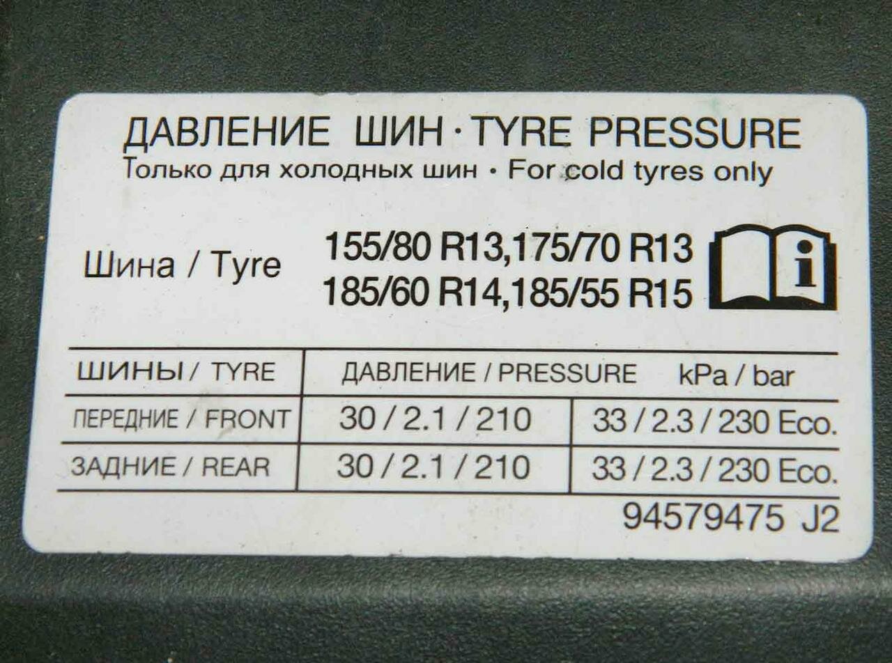 Давление в Шинах от R13 до R18