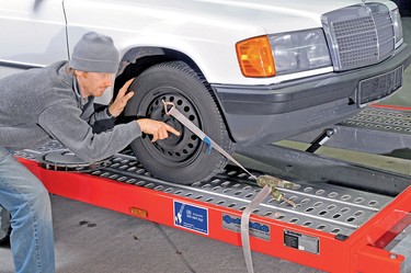 Перед закреплением автомобиля на эвакуаторе произведите осмотр и проверку крепежных элементов, а также контроль за правильным позиционированием колес.