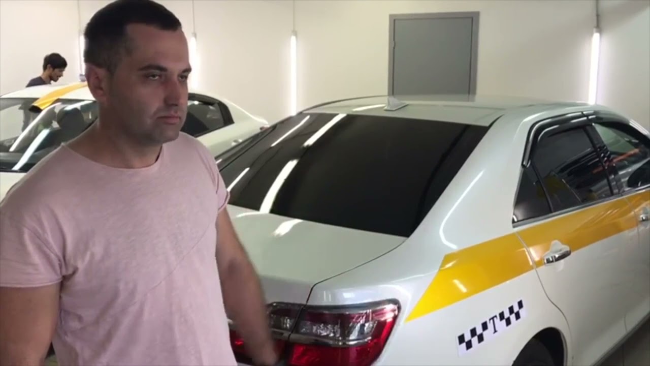 Оклейка Такси по ГОСТ серые и желтые полосы. Pasting a car for a taxi according to GOST in Moscow