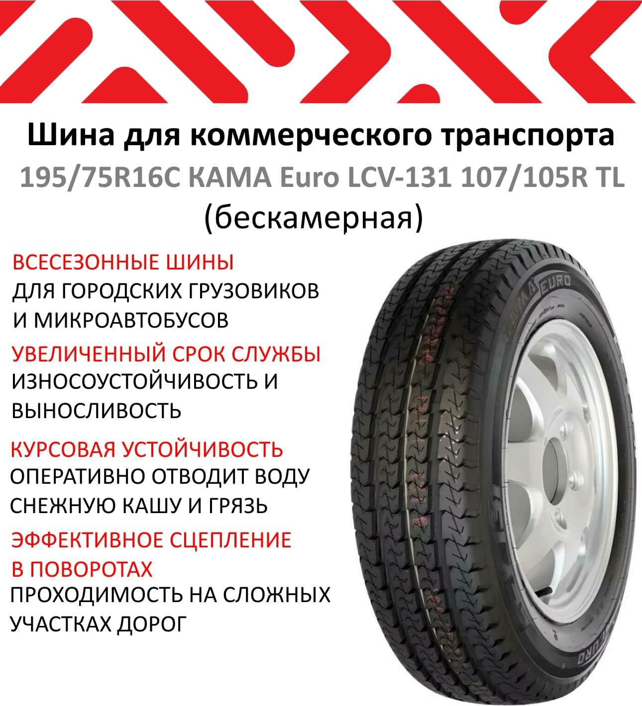 Шины на Газель 195/75/16 С, Кама-Евро, комплект 4 шт