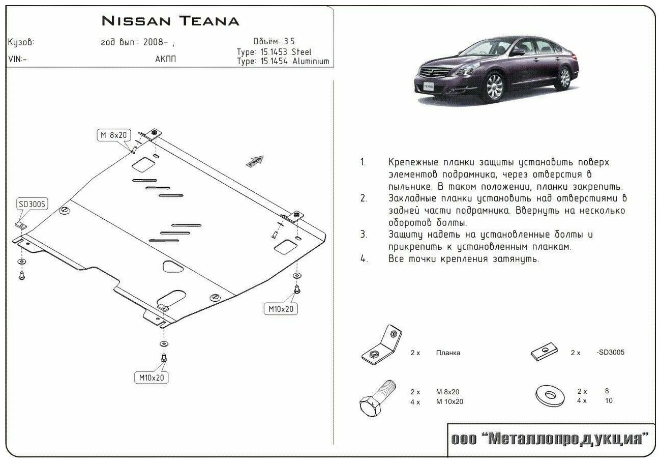 Защита двигателя Ниссан Теана J31 и КПП / Защита картера Nissan Teana J31 / Бренд Титан