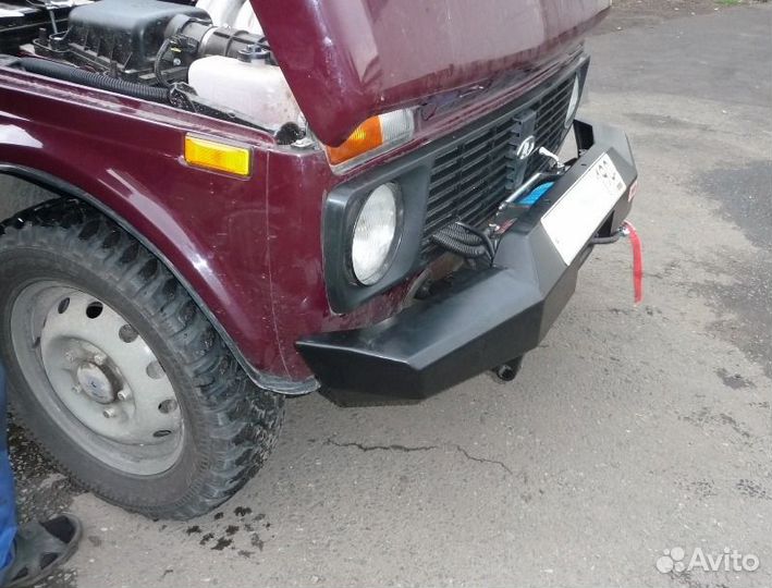 Замена и установка переднего силового бампера Риф под лебедку для автомобиля Лада Нива.