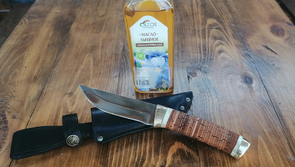 Обработка ручки ножа льняным маслом