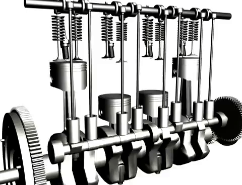 Пятицилиндровый рядный двигатель в плоской анимации