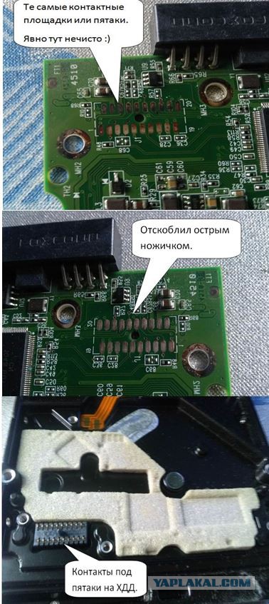 Чистка контактных площадок жесткого диска HDD ластиком