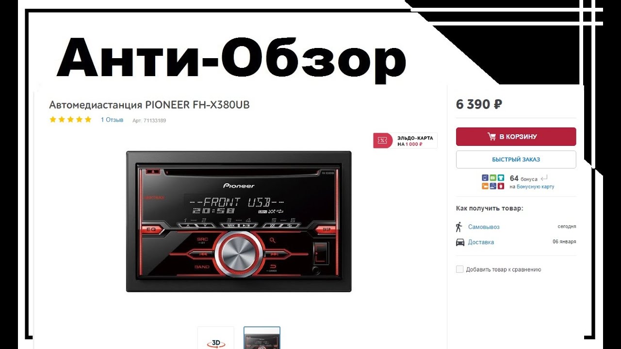 Обзор автомагнитолы PIONEER FH-X380UB - Ситилинк