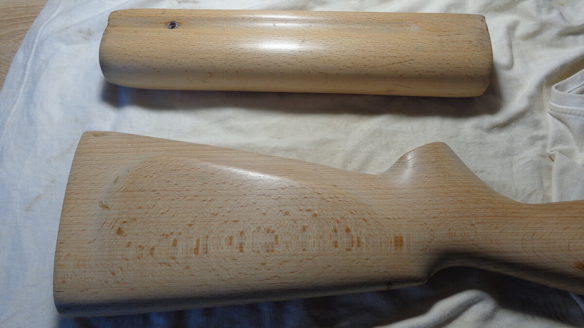 Обработка приклада ружья МР-43 льняным маслом. Сравнение с необработанным деревом.