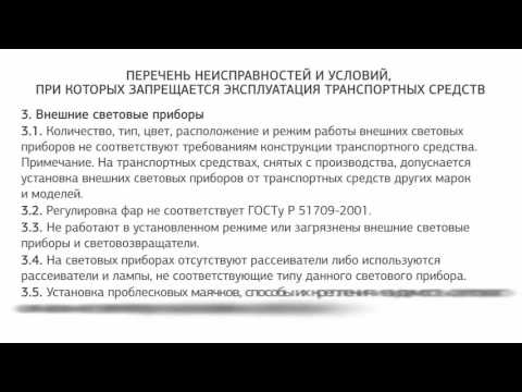 Перечень неисправностей, при которых запрещается эксплуатация авто.