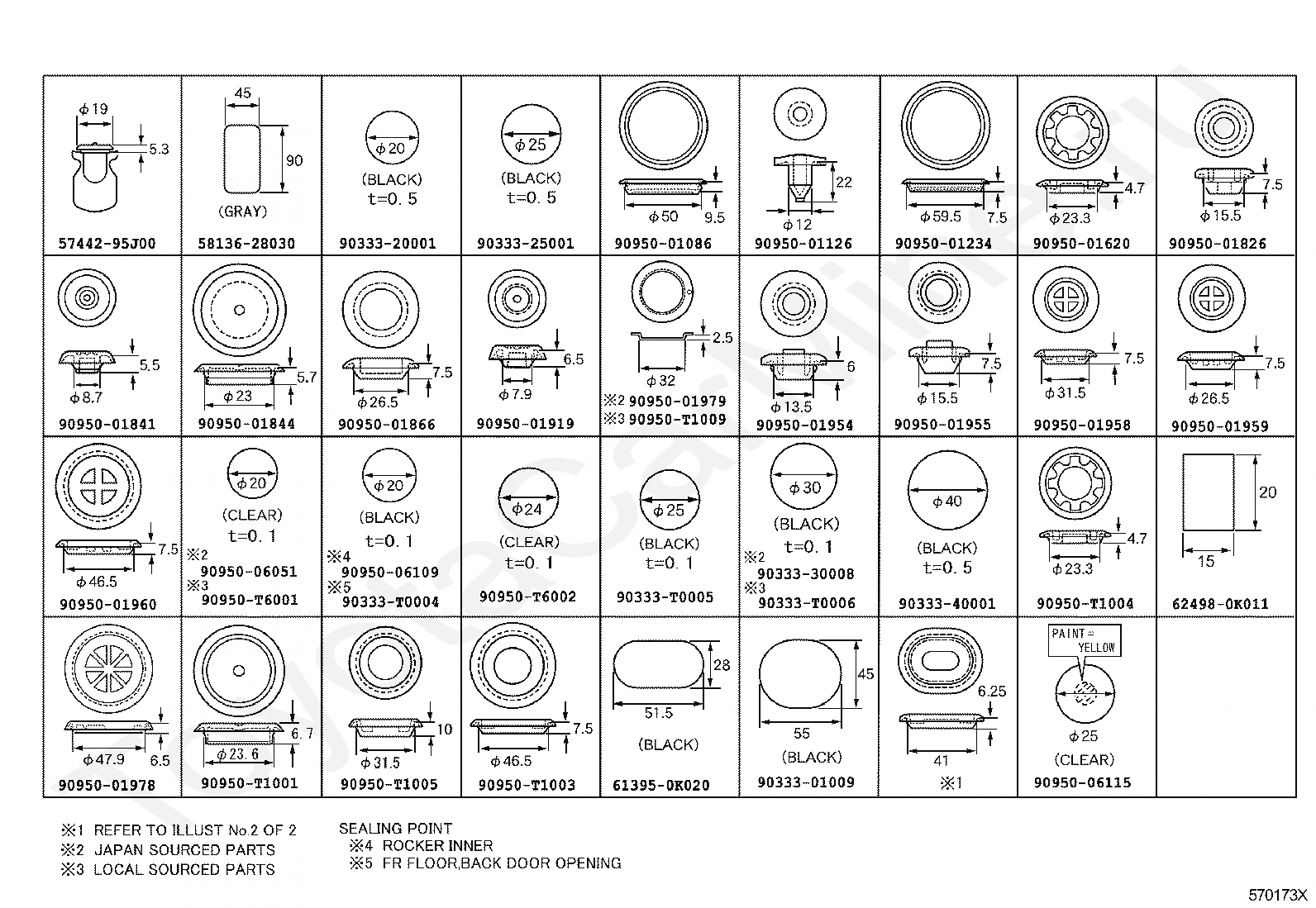 При установке заглушки порога Toyota 90950 01259, следует предварительно очистить поверхность и применить адгезию для лучшей фиксации.