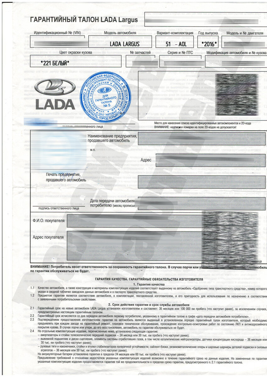 Важная информация о гарантии на Лада Гранта от завода изготовителя