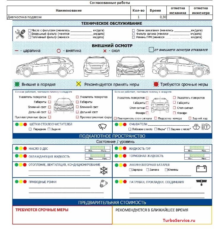Бланк диагностики автомобиля образец