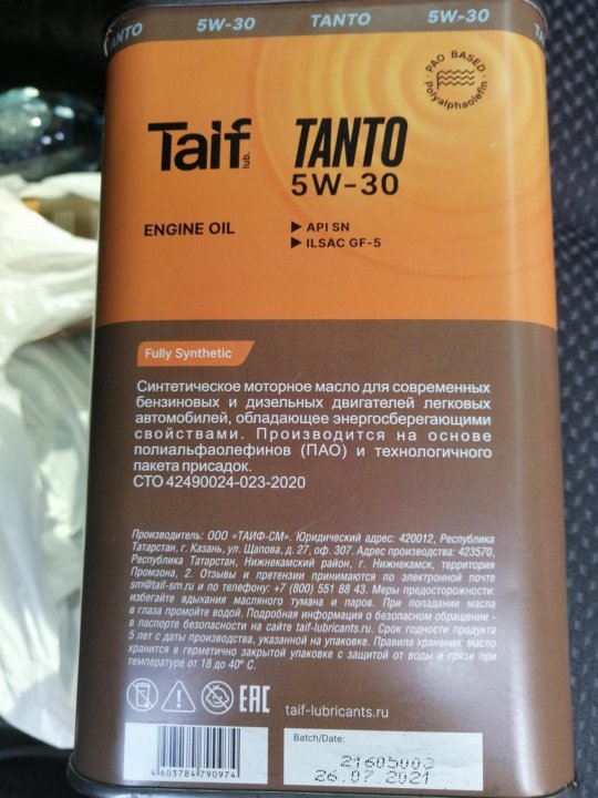 Замена масла на Taif Vite 5w30