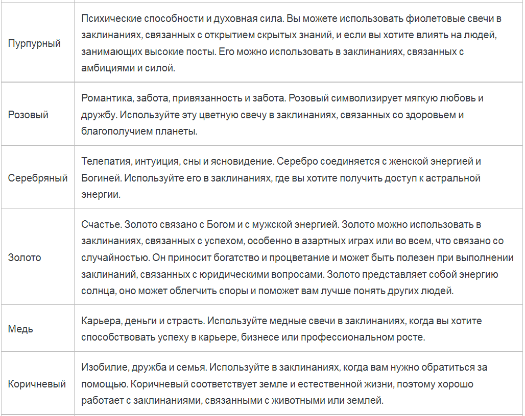 ЧТО ОЗНАЧАЕТ ЦВЕТ СВЕЧЕЙ В МАГИИ