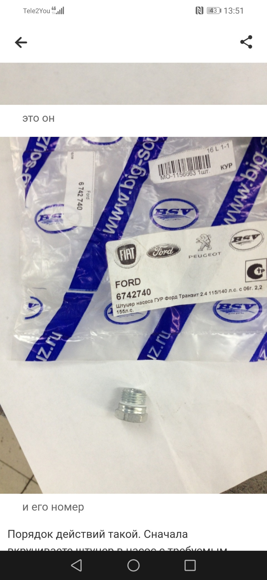 Советы по выбору и установке штатного штуцера гидроусилителя руля на Ford Transit