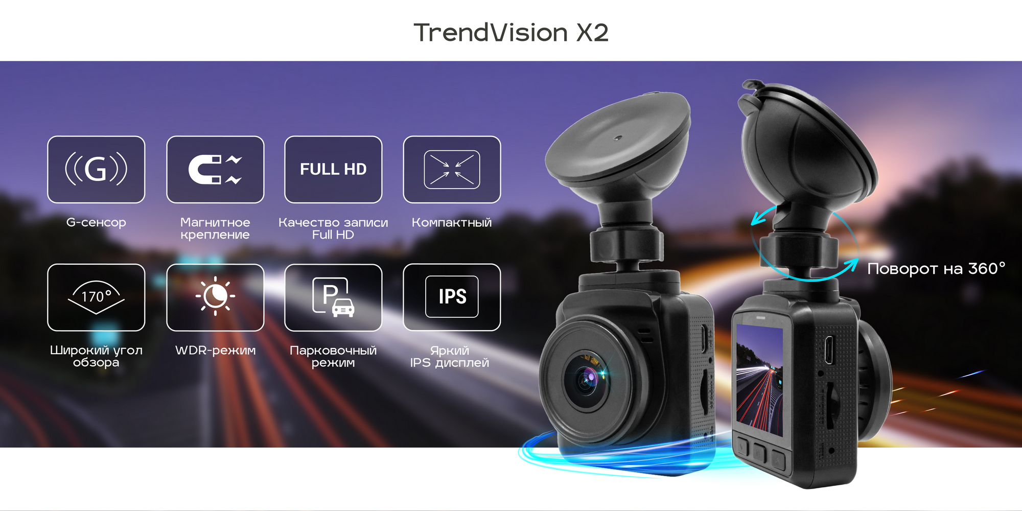 TrendVision X1 - Автомобильный регистратор на каждый день - Wi-Fi, GPS-Информер