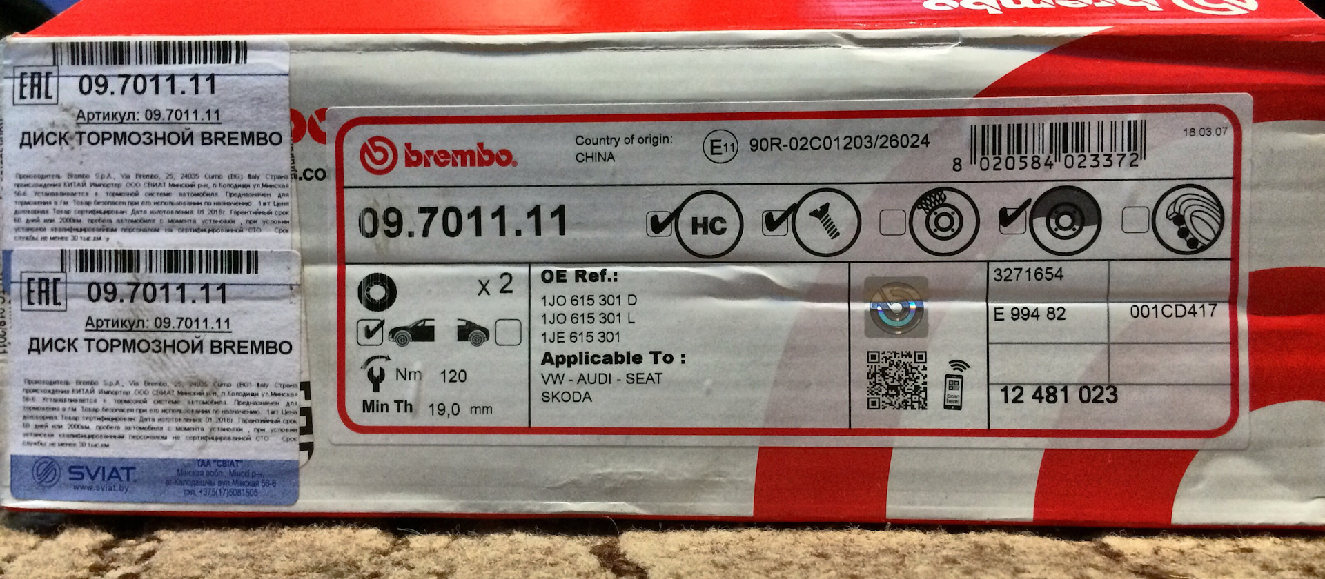 Toyota Camry v40. Передние тормозные диски Brembo XTRA 09.A417.1X. Заметки. Сравнение с NiBk.