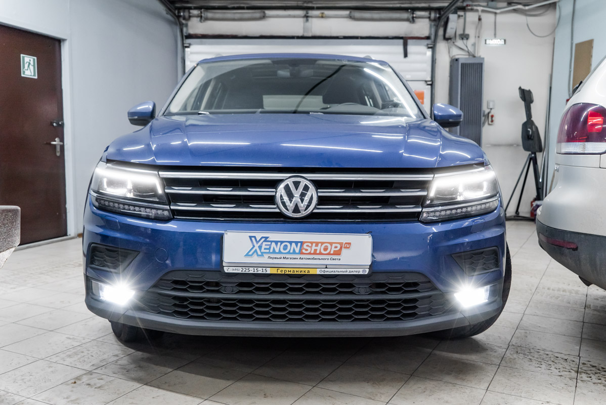 VW Tiguan. Процесс замены галогенных фар на LED Mid