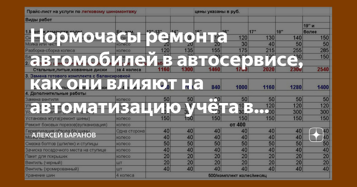 Расчет времени и стоимости работ СТО