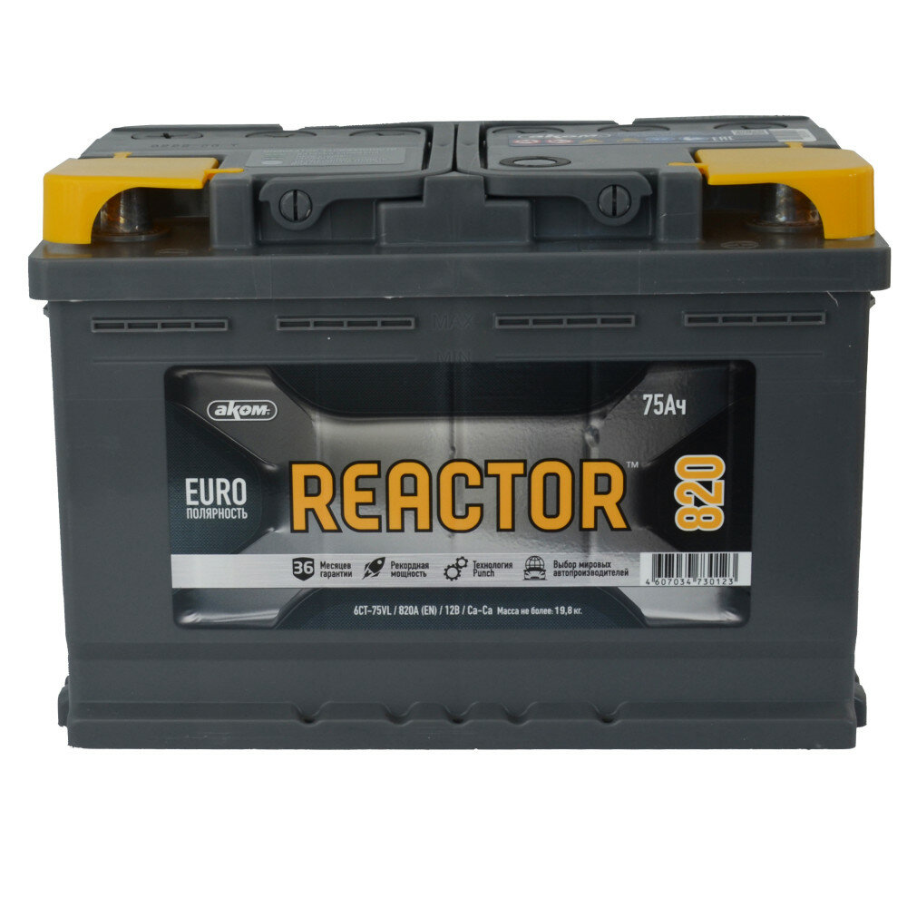 Аккумулятор АКОМ REACTOR 6CT-75 ЕВРО (75 A/H), 820A R+. Обзор технических характеристик аккумулятора