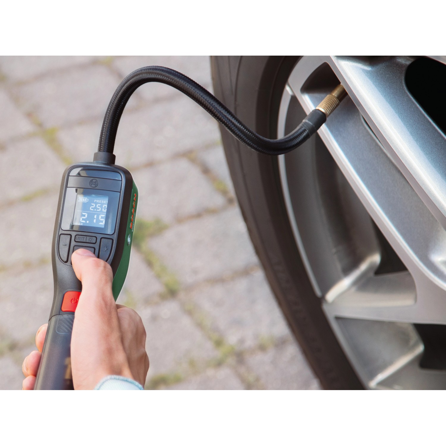 Регулярно проверяйте давление в шинах с помощью автомобильного компрессора Bosch и поддерживайте его в пределах рекомендуемого производителем значения.