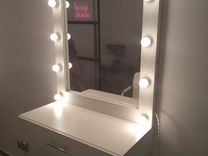 Гримерное зеркало с ящиком из натурального дерева. Гримерная станция