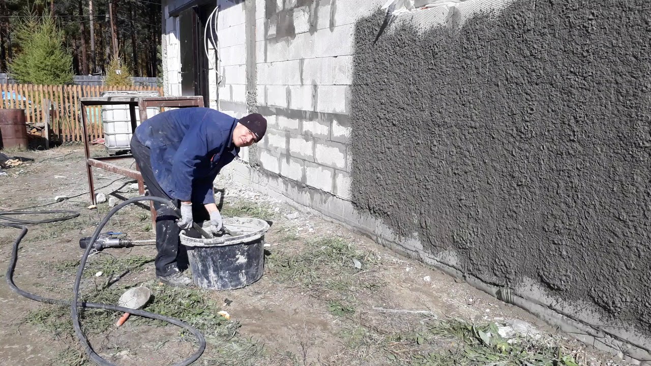 Эффективный способ штукатурить стены с помощью нового компрессора и ковша