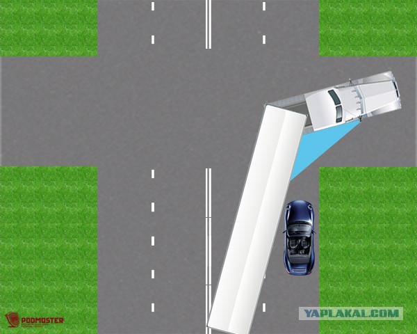 При обгонах грузовых автомобилей обратите внимание на их длину и возможные слепые зоны, особенно при поворотах и смене полосы.