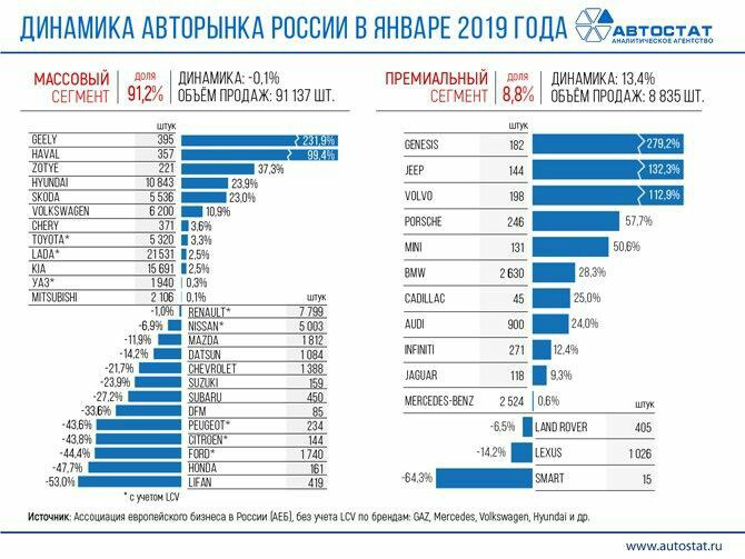 Экономическое автоболото. 2019 год. Продажи новых автомобилей в России.