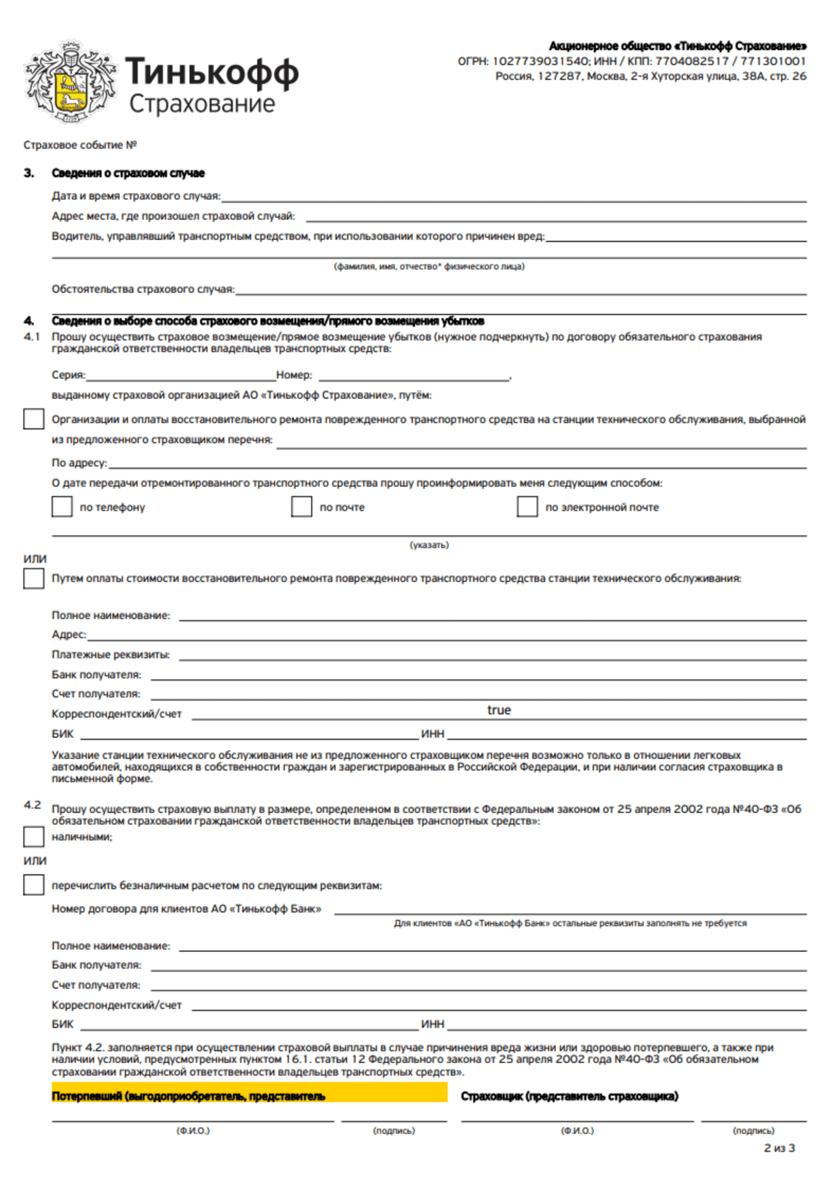 Дистанционные выплаты по ОСАГО в Тинькофф