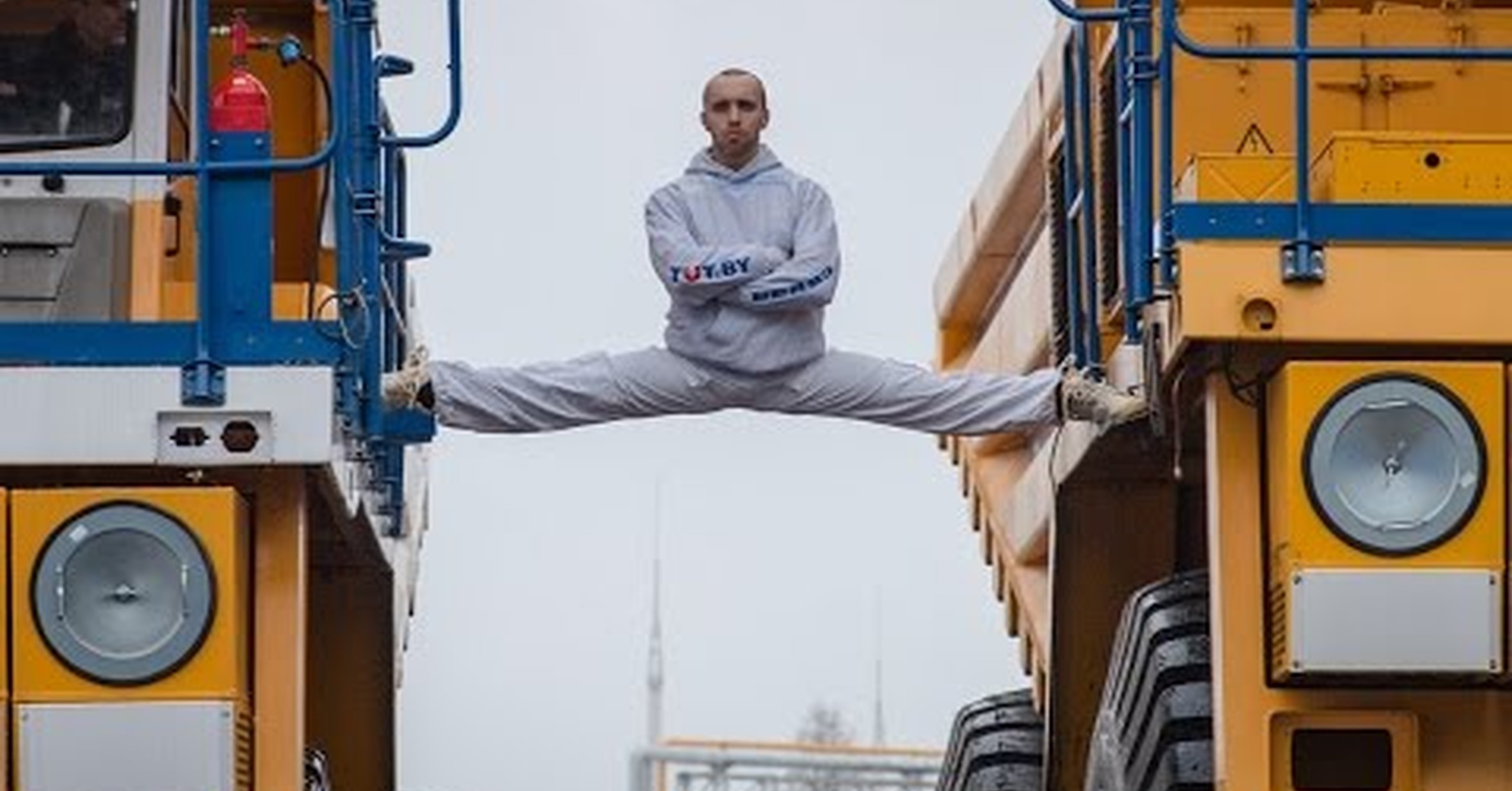 Белорус сел на шпагат между движущимися БелАЗами/The MOST EPIC Epic Split! 160 Ton BelAZ Dump Trucks