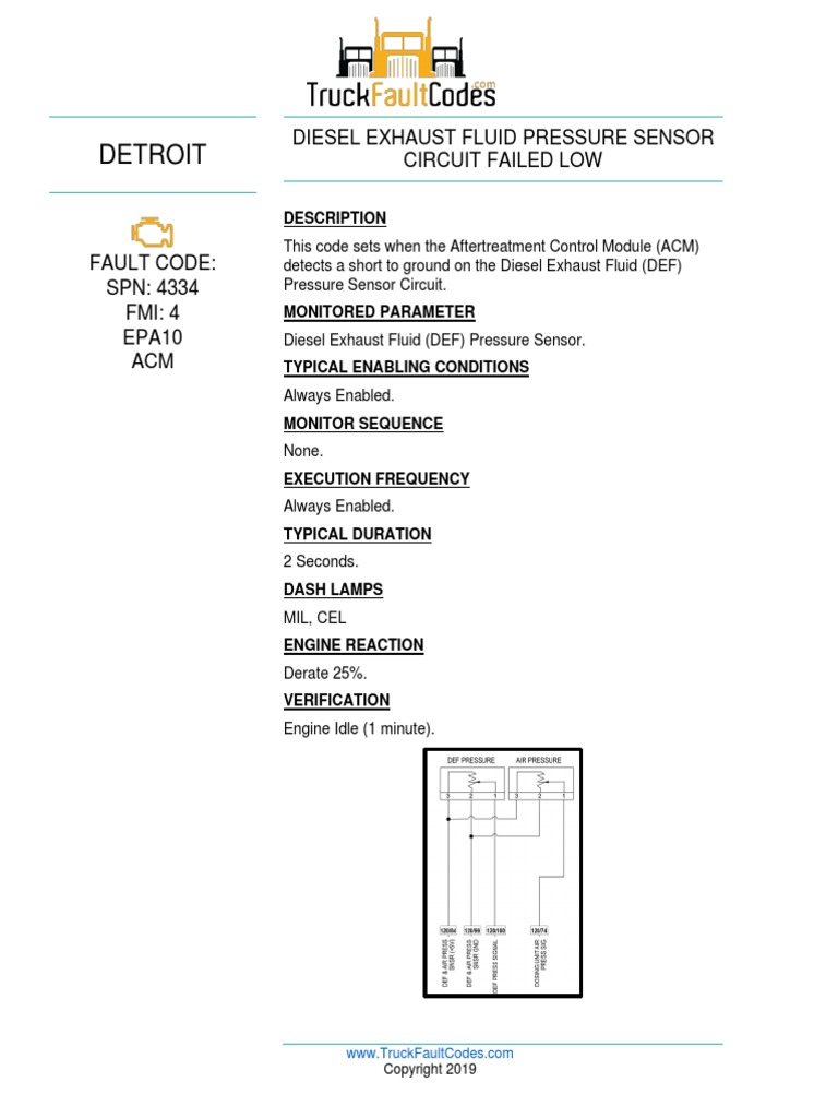 DEF Air Pressure Fault Code 4335