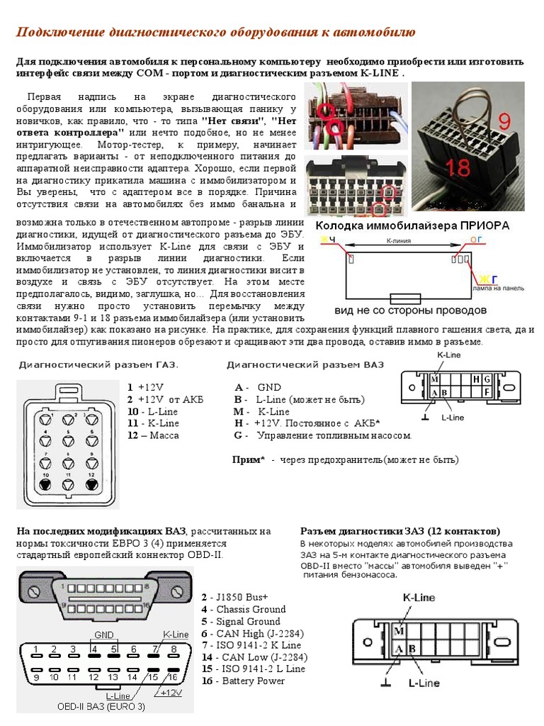 Как подключить ELM327 (OBD II) в разъем GM12 (ВАЗ до 2004 г.)