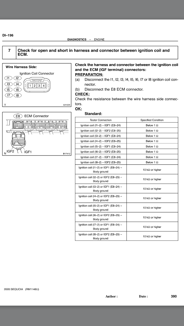 Проверка катушек зажигания Тойота 2UZ-FE.