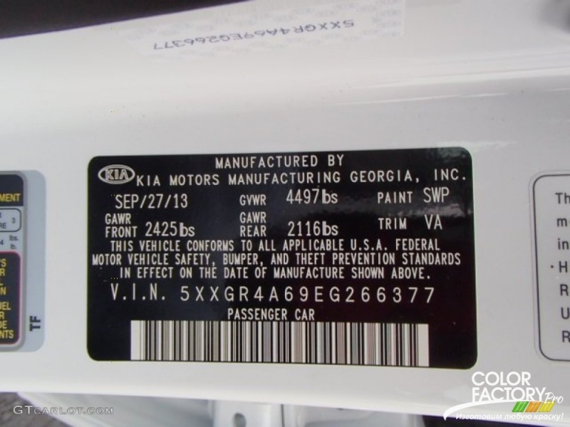 Обратитесь к сервисному центру Киа: они смогут помочь в определении кода краски, основываясь на VIN-номере вашего автомобиля.