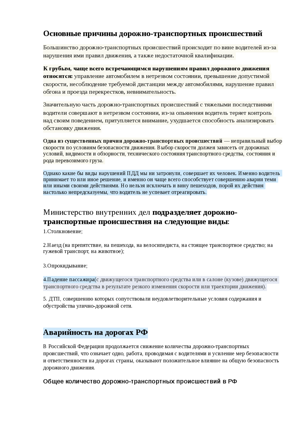 Причины дорожно-транспортных происшествий и травматизма людей