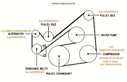 хендай солярис 2011г!замена подшипников натяжного и обводного ролика самостоятельно
