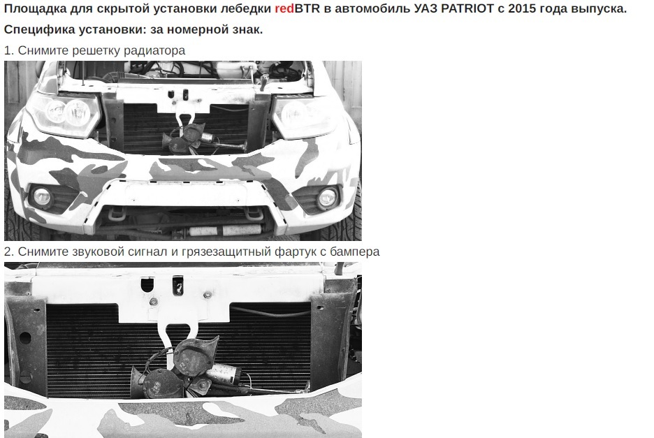 Видеоинструкция установки площадки под лебедку в штатный бампер УАЗ Патриот после 2015 г.в