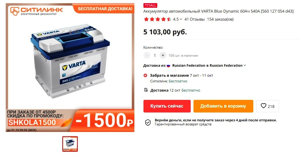 Обзор автомобильного аккумулятора VARTA Blue Dynamic 60Ач 540A - Ситилинк
