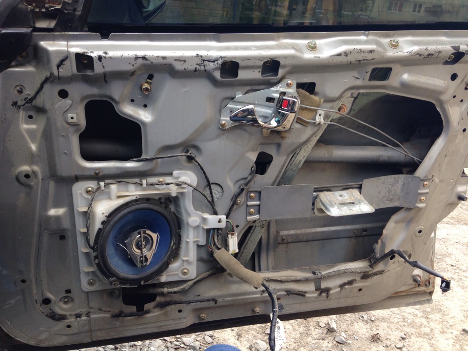 Mitsubishi Pajero замена акустики. Установка динамиков в 4-х дверях через простовочные кольца