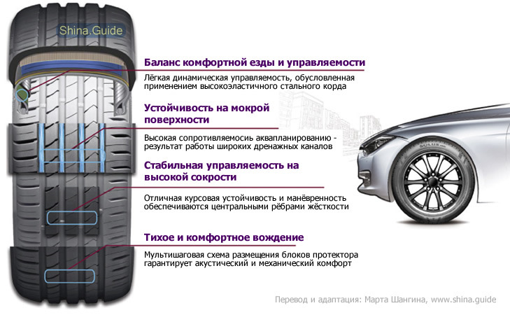 Перед установкой шин Кумхо, внимательно изучите информацию на боковине шины: там указано правильное направление вращения. Следуйте этой информации, чтобы избежать неправильной установки.