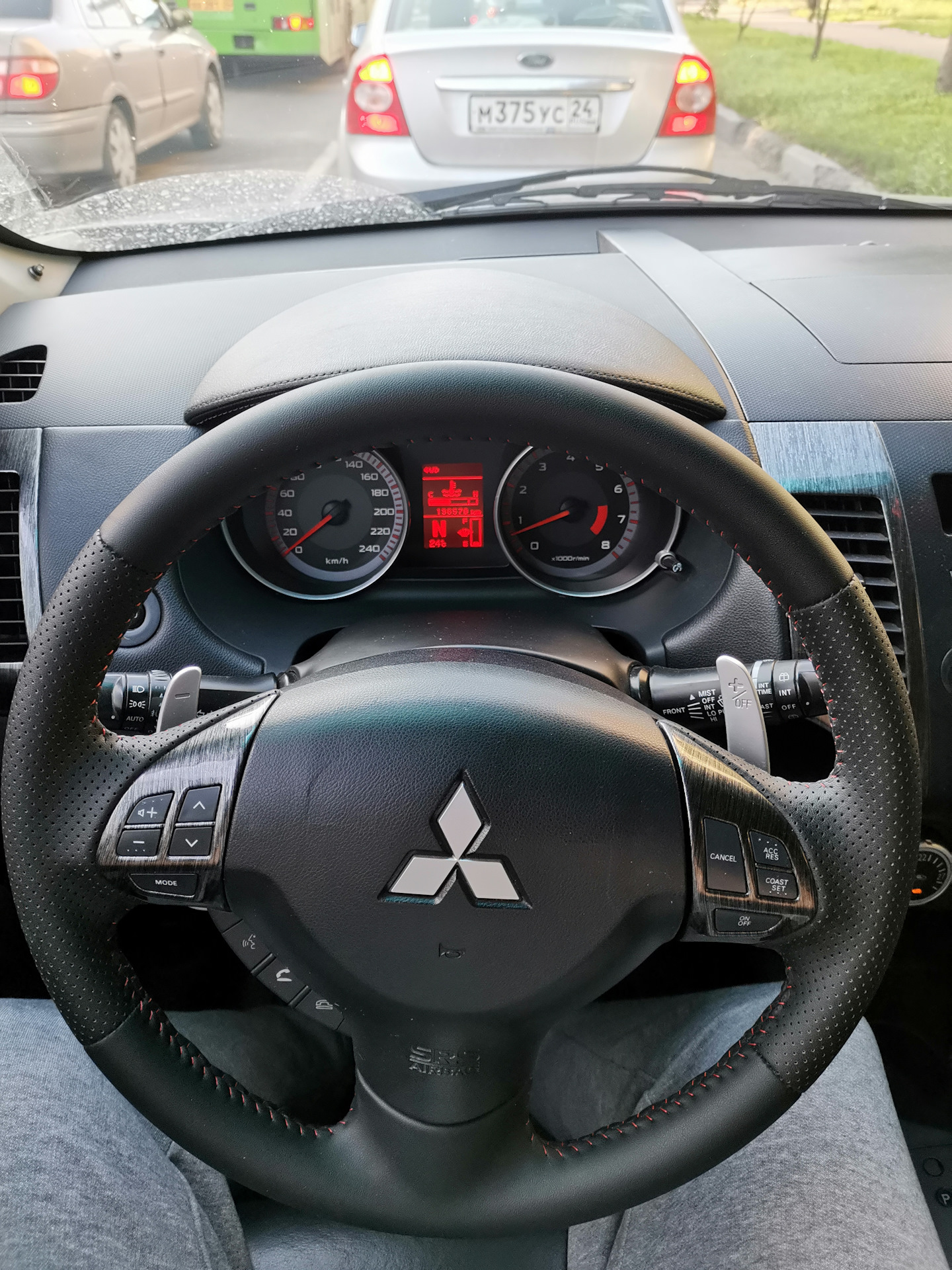 Mitsubishi Outlander XL - Перетяжка руля и ручки КПП кожей. -