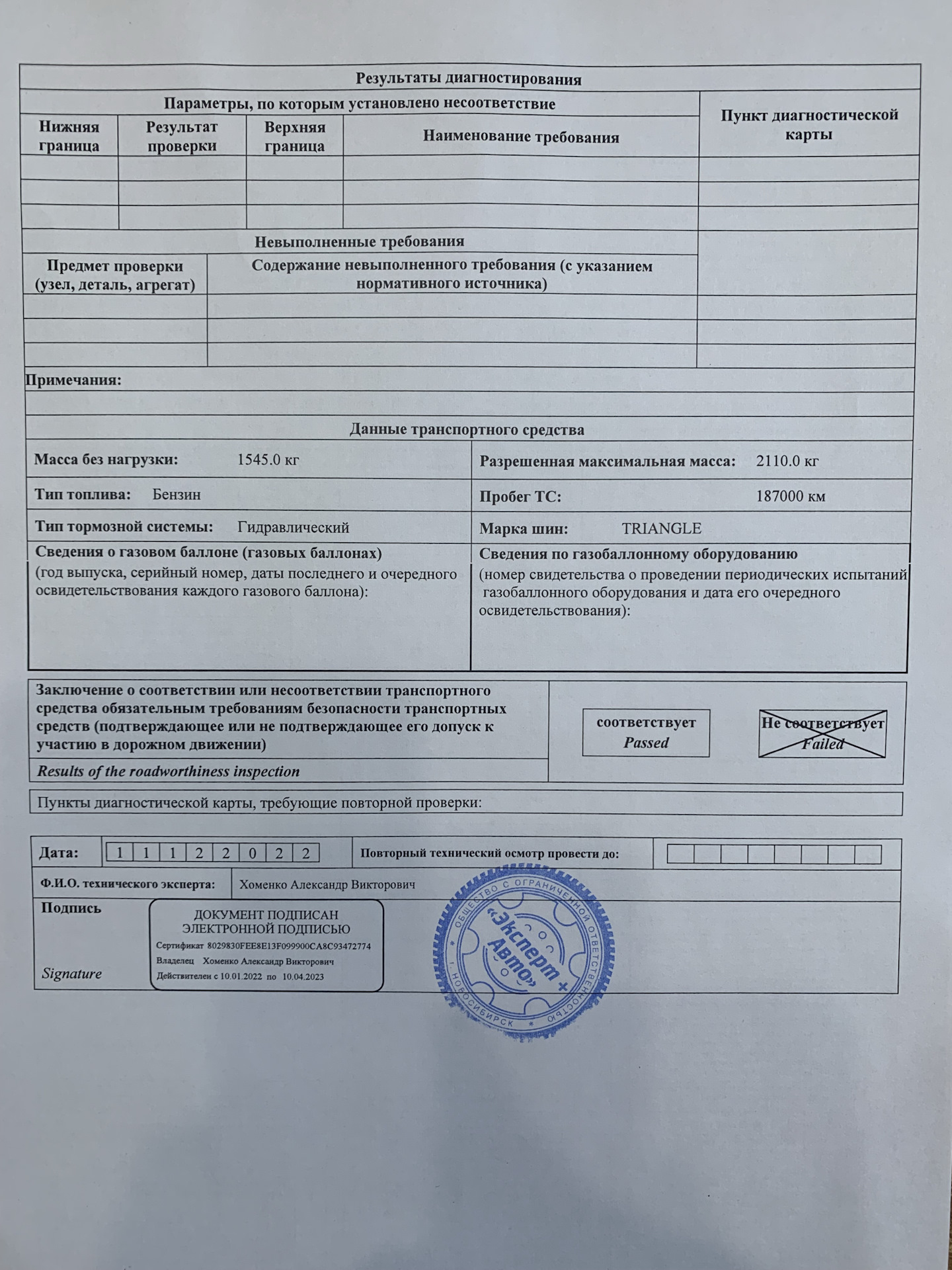 Техосмотр легкового автомобиля