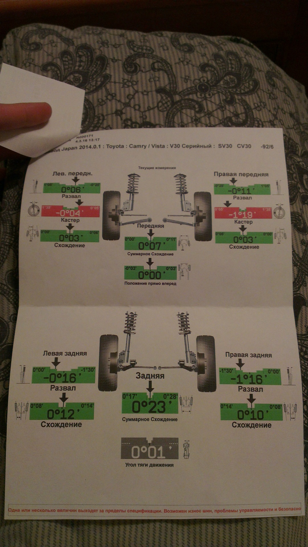 Обратитесь к специалисту для настройки сход-развала вашей Toyota Camry, чтобы убедиться, что все парметры соответствуют указаниям производителя и настроены оптимально для вашего автомобиля.