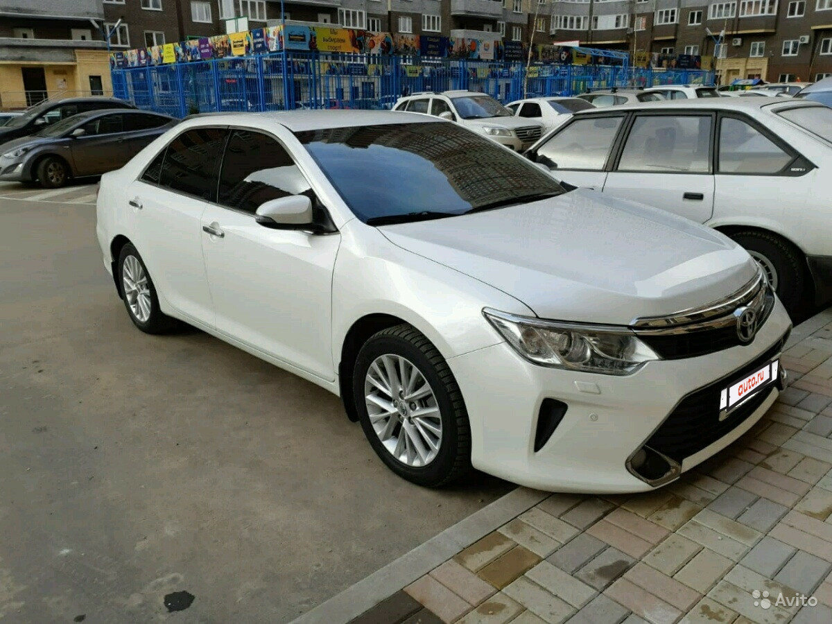 Toyota Camry 2016 года. 2.5 AT цвет белый перламутр. 3 владельца, 163.000 км родного пробега.