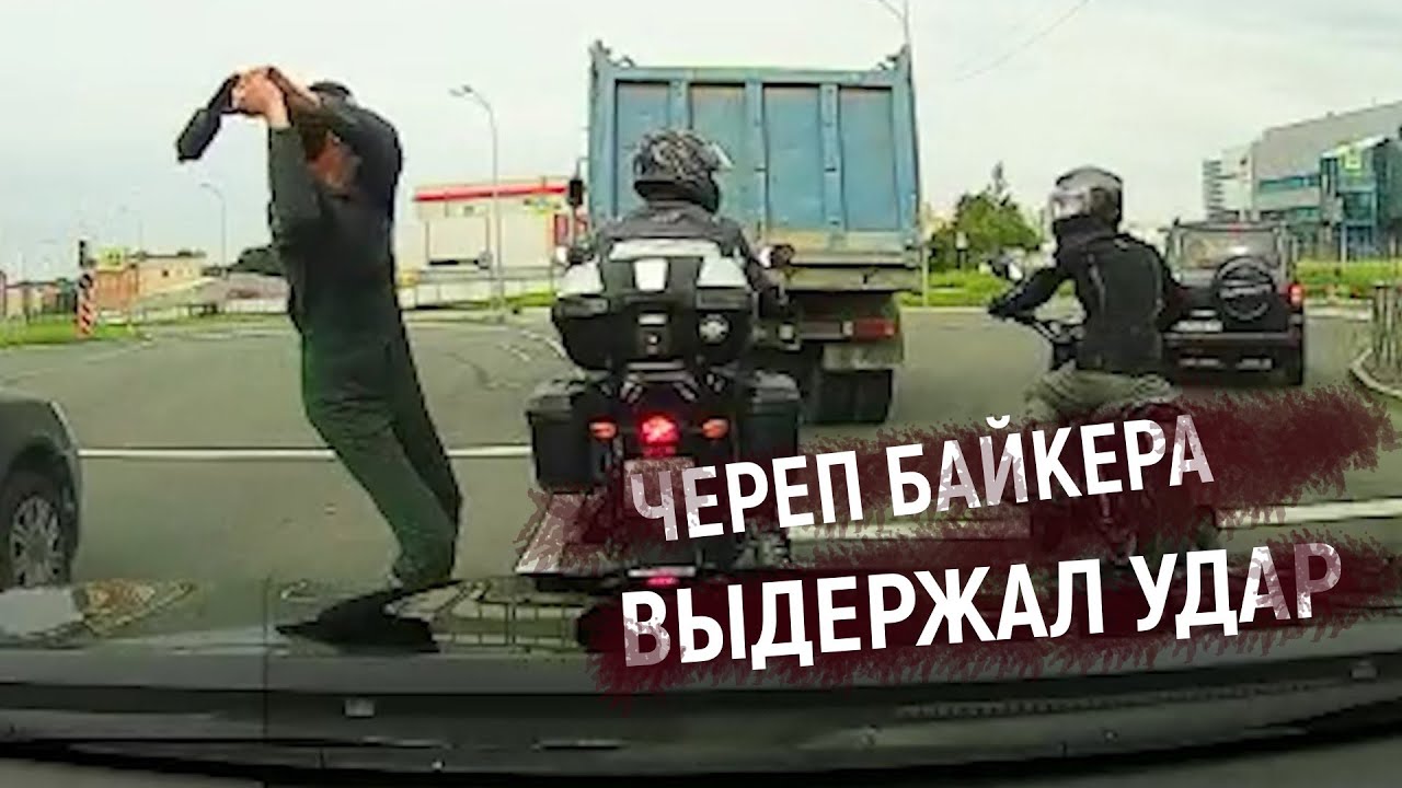 Драка мотоциклиста с автомобилистом. Ты че ах*ел\u0026?