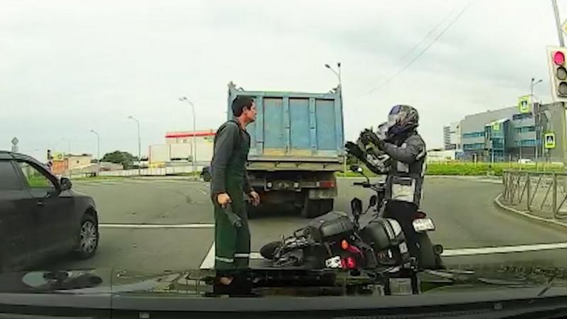 Водитель напал на мотоциклиста