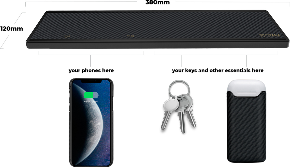 Используйте зарядное устройство Pitaka с встроенным датчиком, который автоматически регулирует силу заряда для вашего устройства.