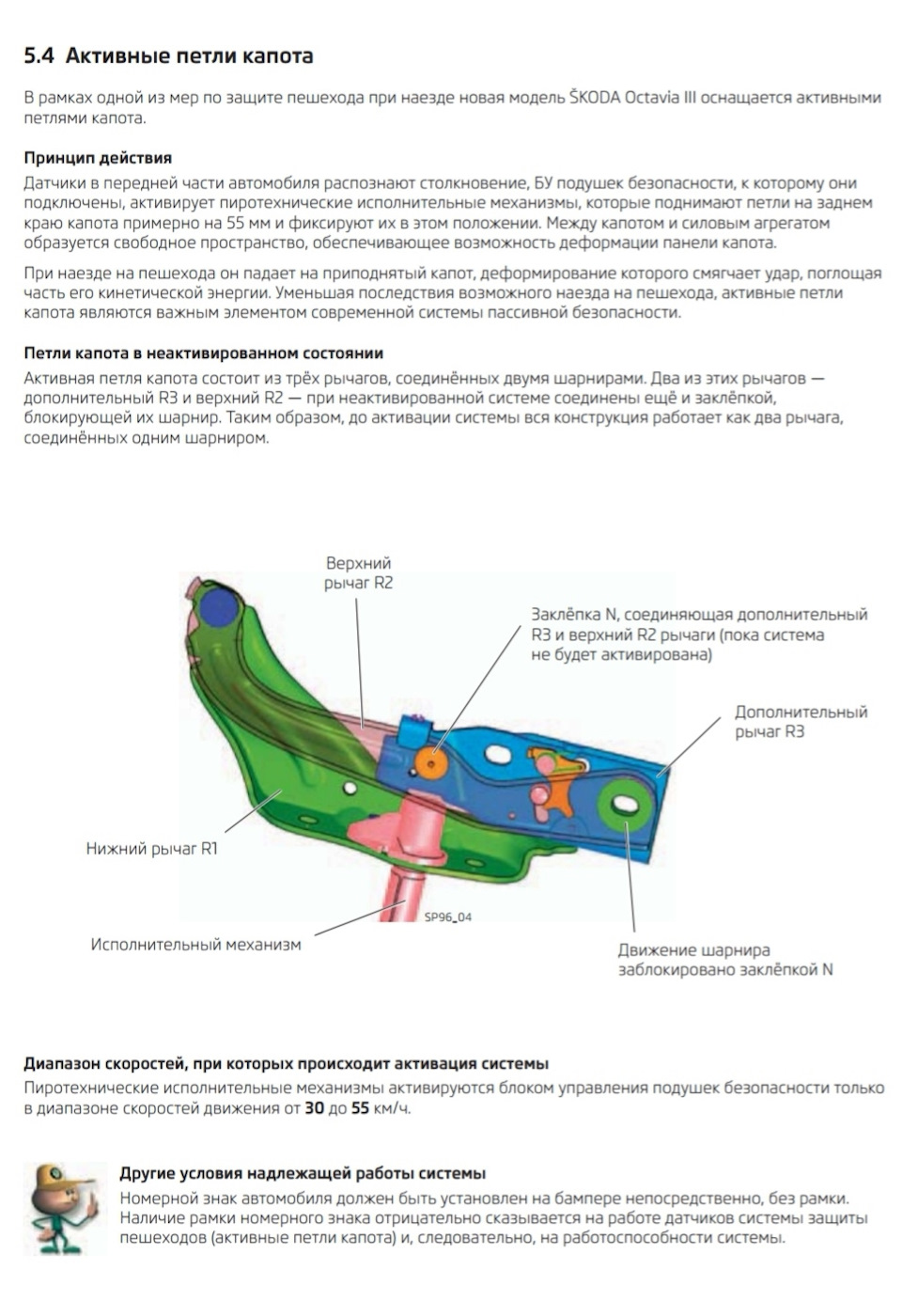 Обратите внимание на зоны с повышенным движением пешеходов и установите дополнительные сигнальные системы, указывающие на наличие активного капота.