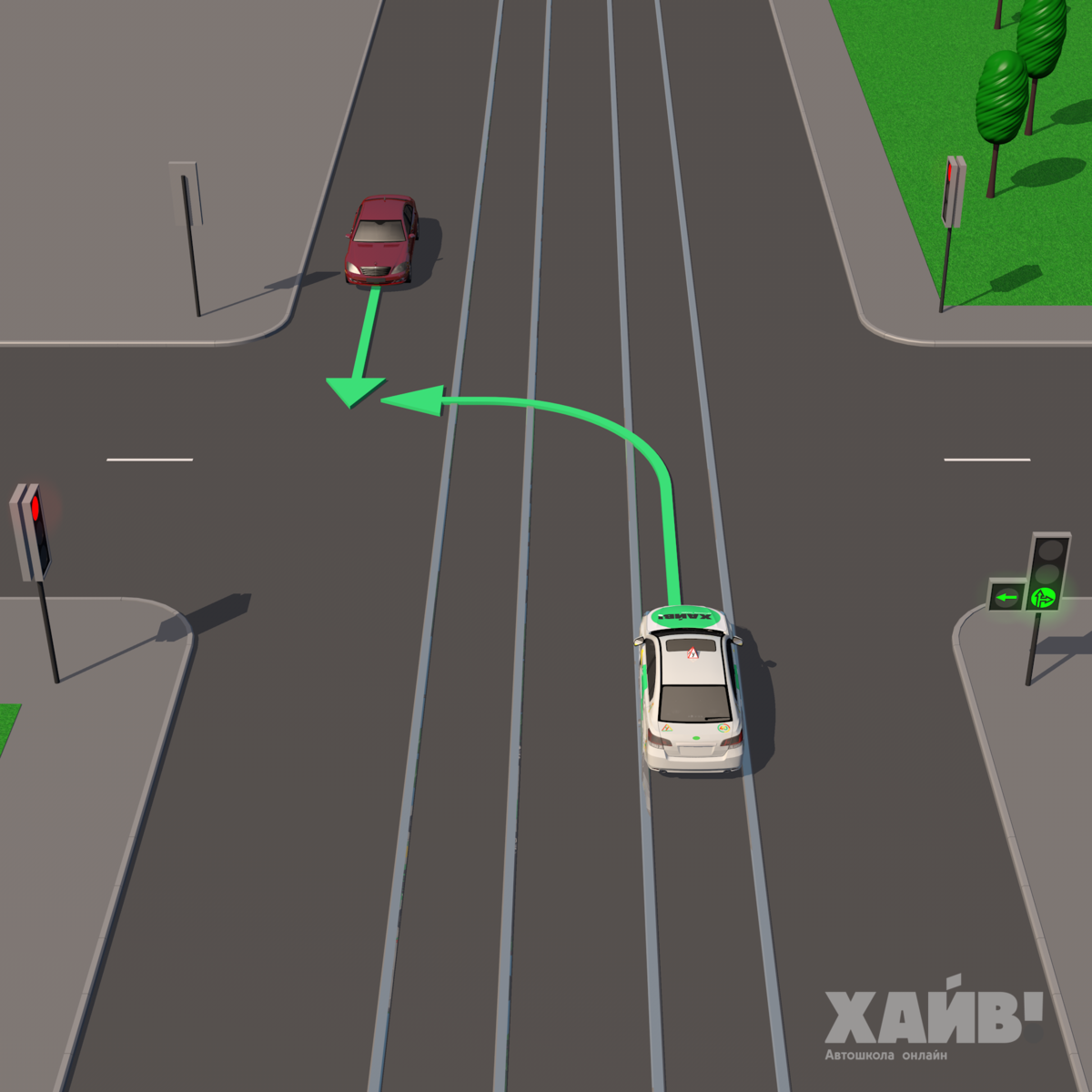 Зелёная стрелка много разных ситуаций