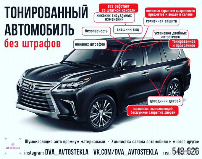 Повышение конфиденциальности: Двойная тонировка стекол обеспечивает большую конфиденциальность и предотвращает проникновение посторонних глаз в салон вашего автомобиля.